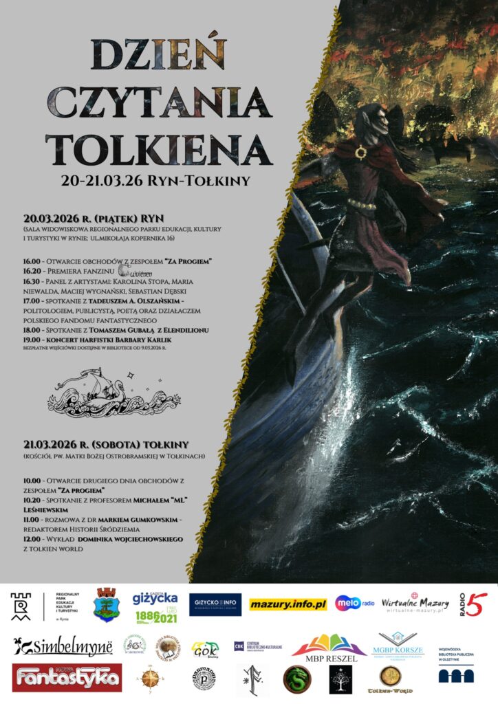 W tym roku, o ile to w ogóle możliwe, jeszcze bardziej zapraszam na obchody Dnia Czytania Tolkiena w Tołkinach i Rynie. Oprócz licznych standardowych atrakcji w postaci koncertów czy spotkań z zasłużonymi tolkienistami, tegoroczna edycja będzie zawierać przede wszystkim premierę nowego czasopisma tolkienowskiego „Cuivenem”, ale też moją prelekcję, w związku z czym Tolkien World znalazł się w szerokim gronie patronów wydarzenia. Dalsze szczegóły będzie można znaleźć w wydarzeniu na facebooku.