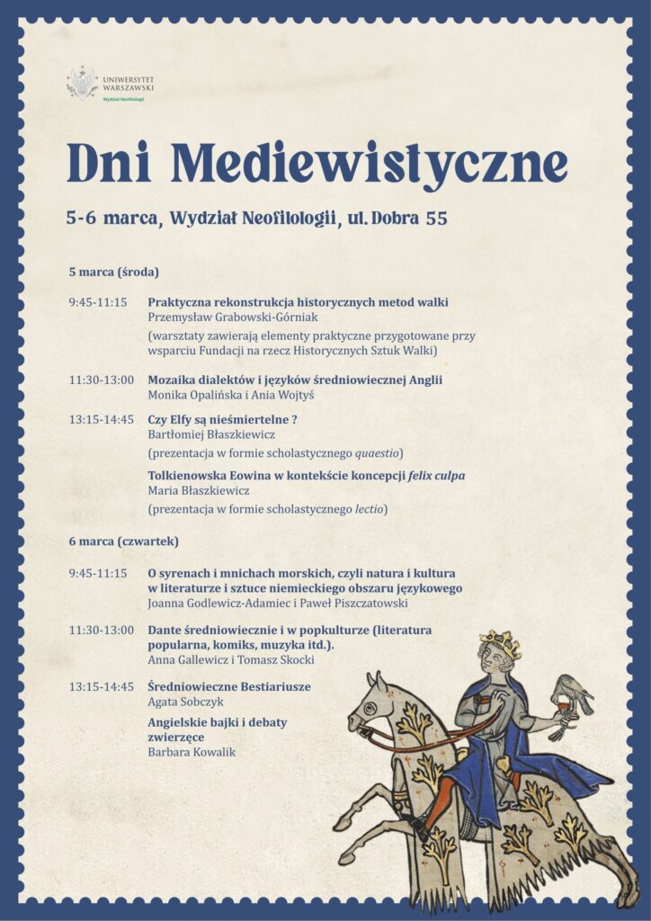 Już za tydzień w Warszawie będzie można wysłuchać dwóch tolkienistycznych wykładów w ramach Dni Mediewistycznych na Wydziale Neofilologii UW.