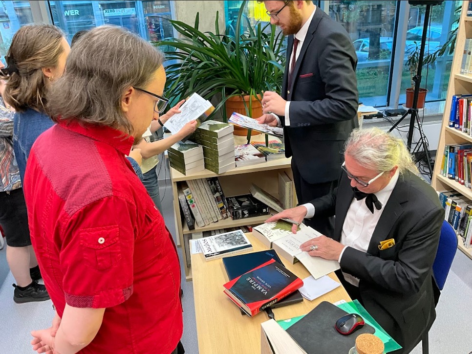 Dziękuję bardzo panu profesorowi za wizytę, wydawnictwu za ściągnięcie go, Bibliotece Wydziału Neofilologii za ugoszczenie nas, a Parmadilim i Fellowship of the Book na czele z panią profesor Marią Błaszkiewicz za organizację.